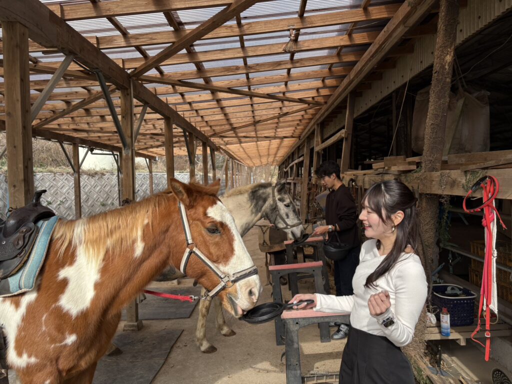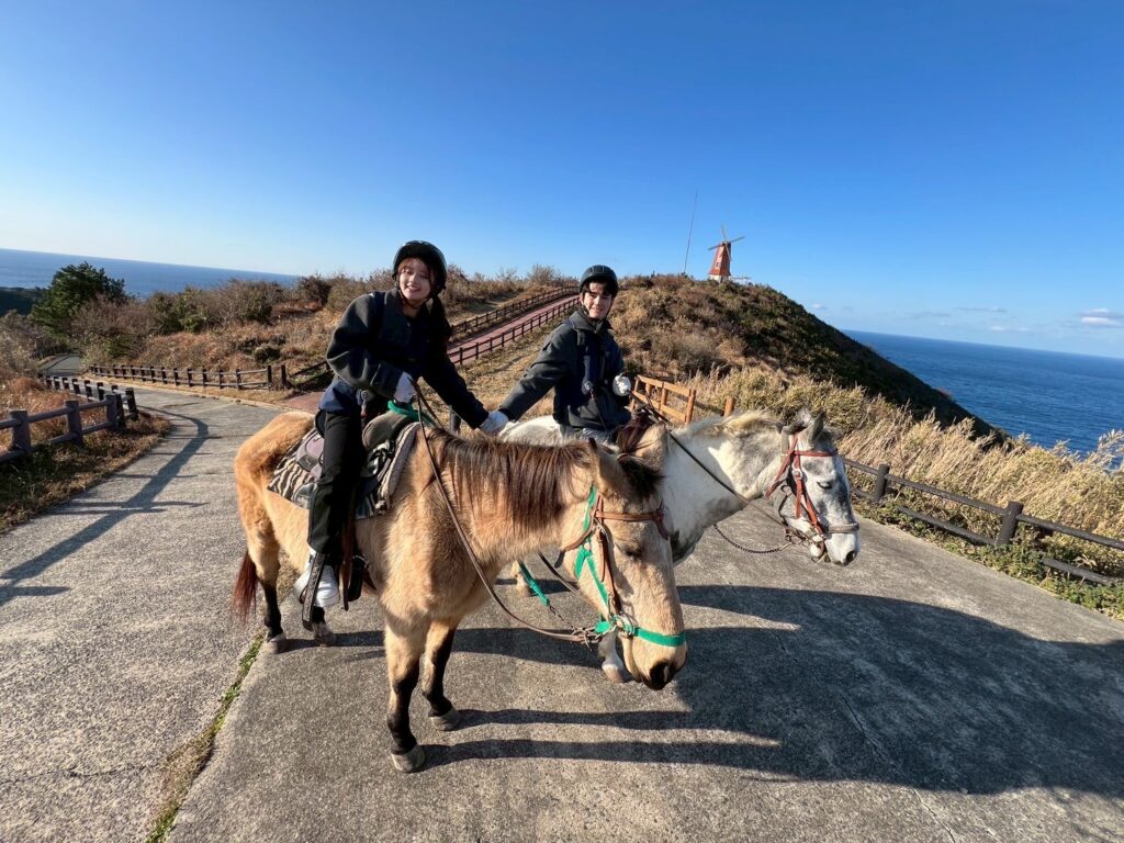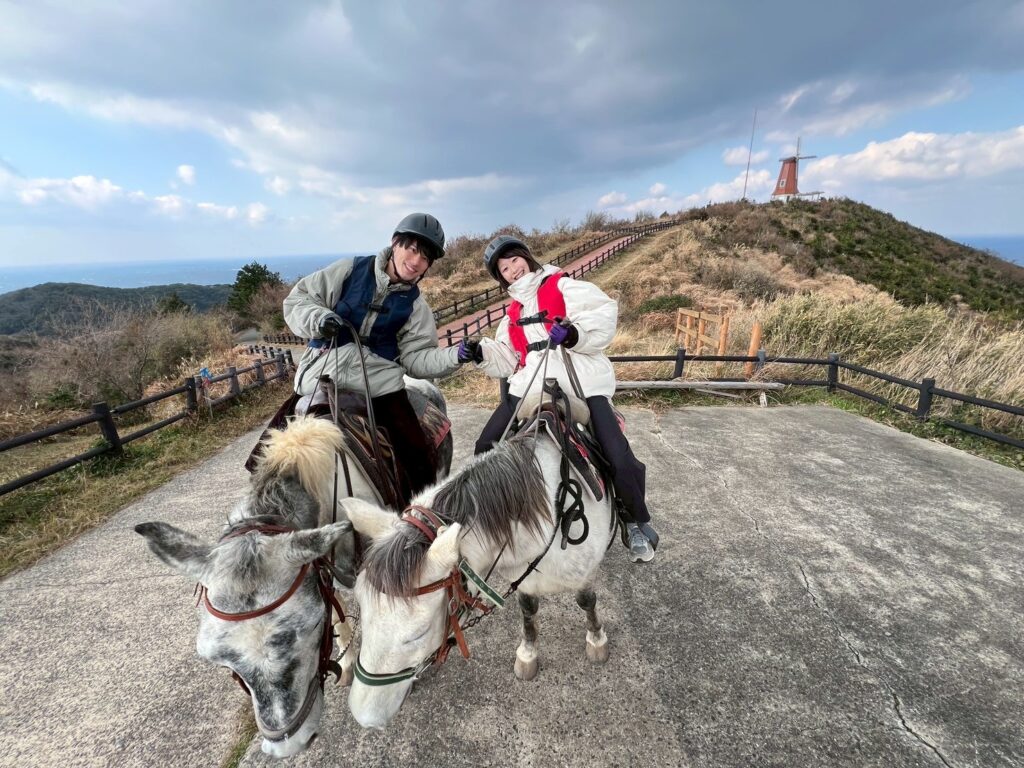 2026.02.02 イベント 手ぶらでOKチョコっと乗馬デート!【ペア限定】 今年のバレンタインは大島牧場でかわいい馬たちとふれあいながら特別な思い出を作りませんか?2/14(土)~3/14(土)の期間にペアでご来場いただいた方に特別なプレゼントのキャンペーンです!カップルやお友達、親子もOK!●お1人3,000円以上の体験プランをご予約のペア・幸せを呼ぶ蹄鉄・推し馬キーホルダー・推し馬マグネットのうちお1つプレゼント●お1人3,000円未満の体験プランをご予約のペア・エサやり体験 馬たちとふれあえるおすすめプラン ■ふれあいタイム(約20分)馬に触ってみたり、ブラッシングやエサやり体験、馬と一緒に写真を撮った、。馬には乗らずに、大島牧場の優しい馬たちとふれあってみよう!大人の馬だけではなく、大島牧場ならではの仔馬たちともふれあえます。 ■ミニ遠乗り(約30分)風車展望台を目指して馬に乗ってみよう!ガイドの後ろから、自分で手綱を持ってお散歩体験。 ■大島乗馬体験プラン(1時間30分)30分間馬の動かし方のレクチャーを受け、いざトレッキングへ。初めての方でも、絶景の中で本格的な乗馬をお楽しみいただけます。 ■初心者向けサンセットトレッキング(1時間)馬の動かし方のレクチャーを受け、いざトレッキングへ。初めての方でも、サンセットを眺めながら本格的な乗馬をお楽しみいただけます。大島にお泊りの場合は、夕陽が沈む時間に合わせたスタートも可能ですのでご相談ください。 予約をリクエスト 2026年カナキャンカレンダー イベント日程訂正のお知らせ 前の記事